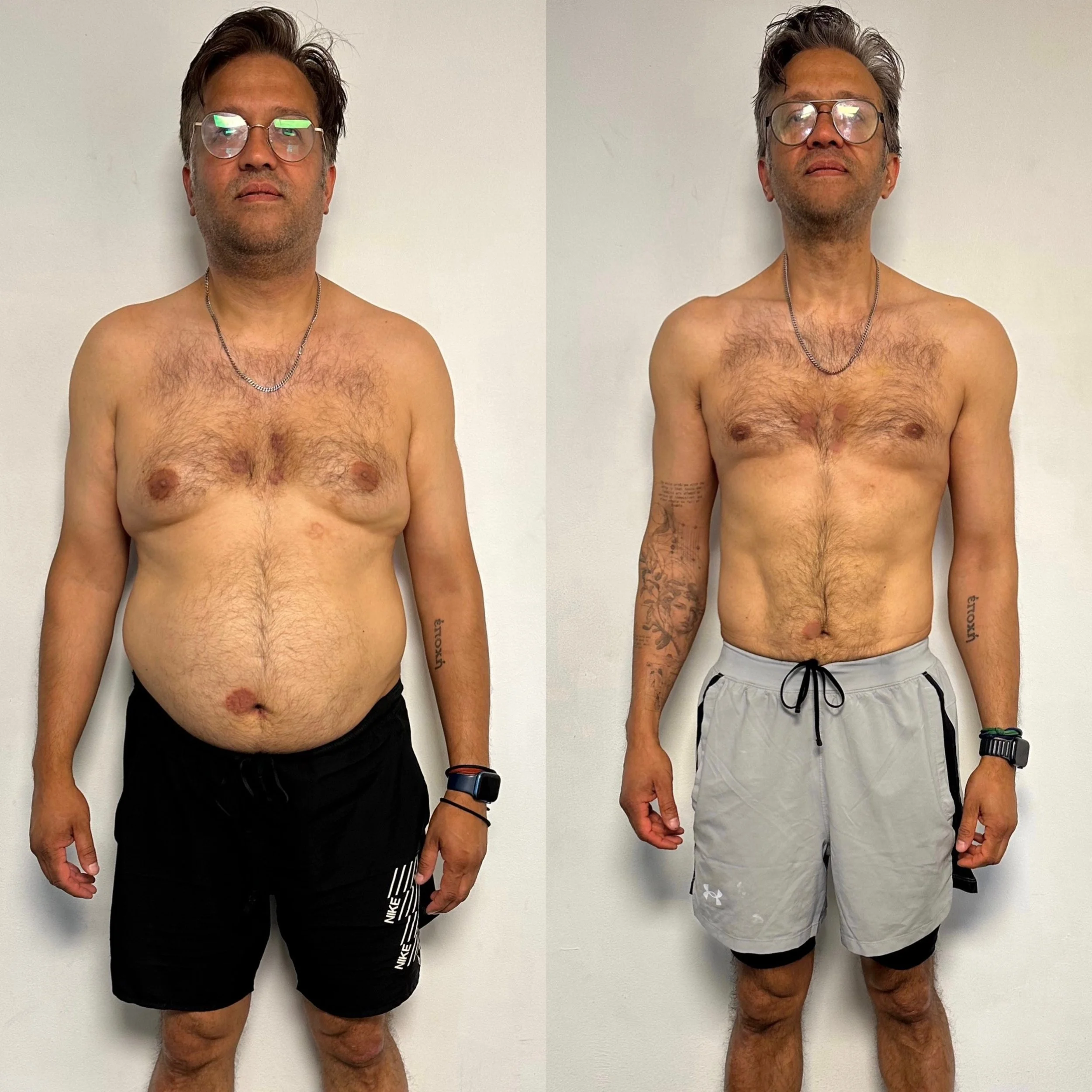 Lost 35kg of body fat - Lost 48cm around waistline - Increased muscle mass by 10kg